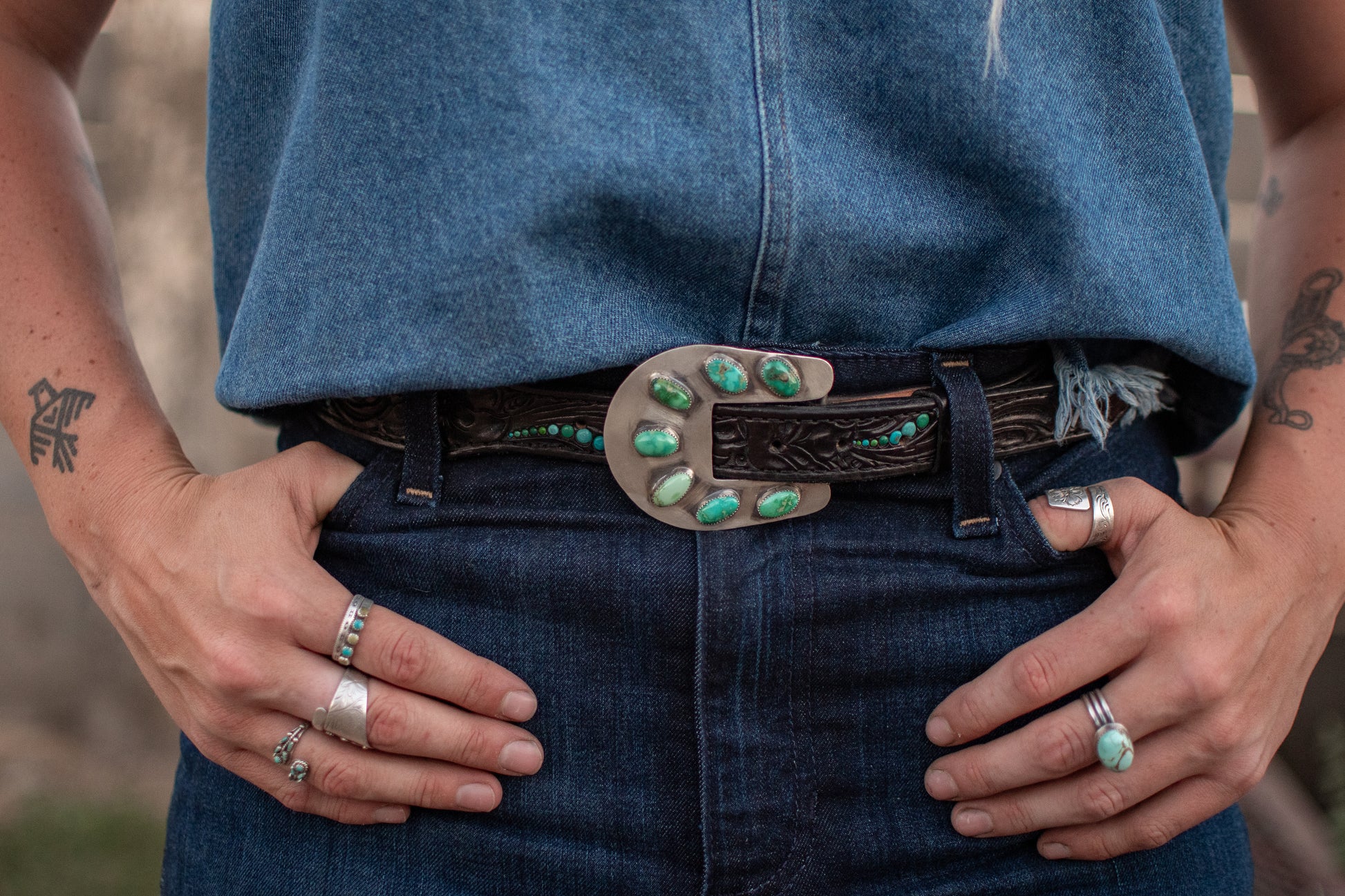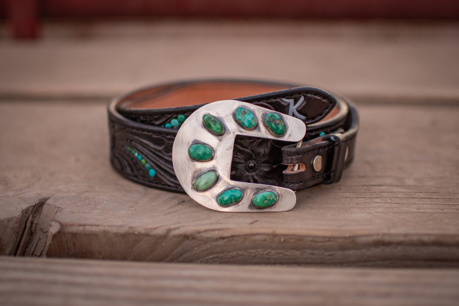 Spring Fling features a stunning emerald valley turquoise. This elegant buckle adds a touch of natural beauty to any outfit. Made with quality craftsmanship and eye-catching details, Spring Fling is the perfect addition to your collection. It is made for a 1” belt.
