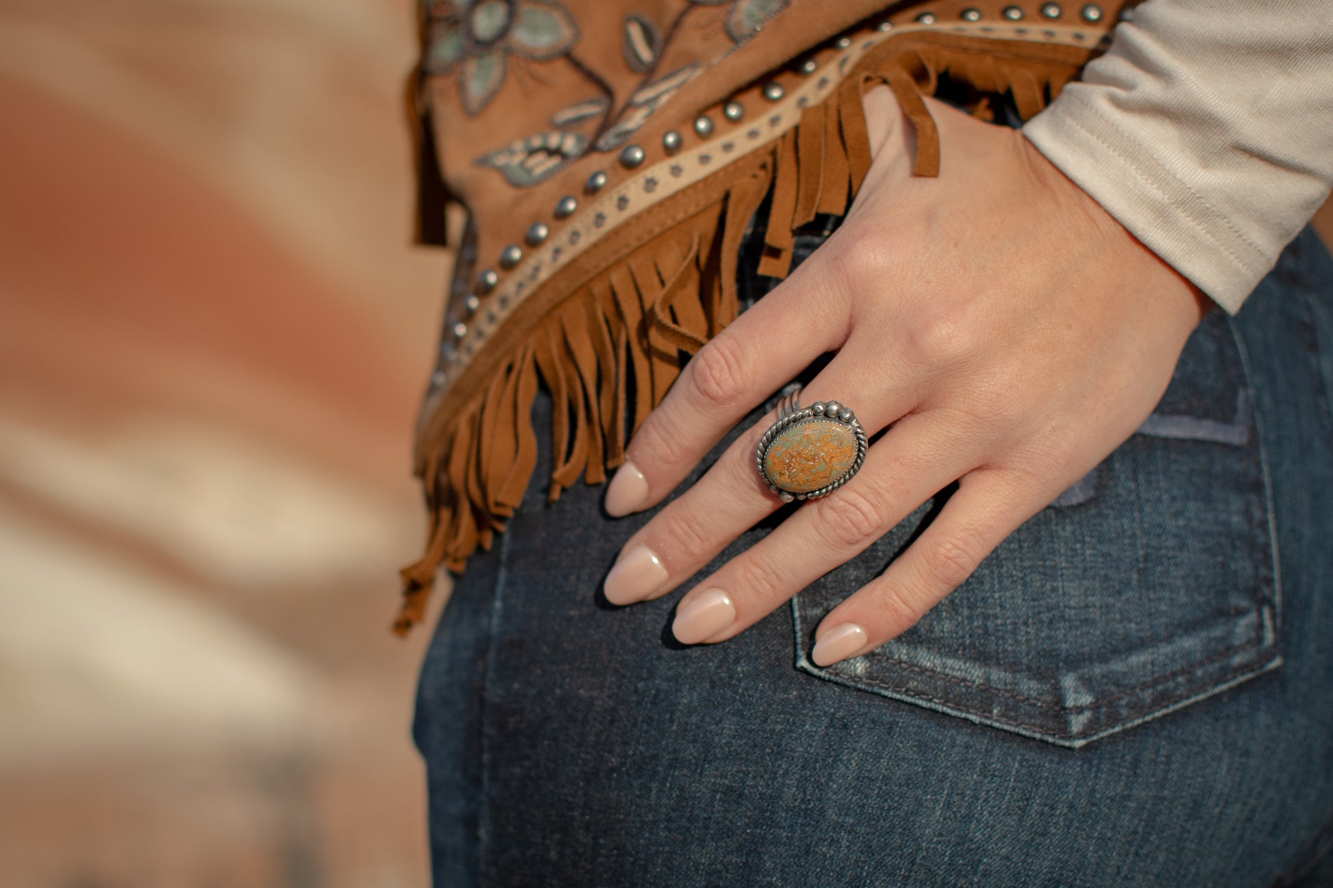 Score big with The Jackpot ring! This chunky, turquoise stunner in size 9 makes a bold statement while being comfortable to wear. It's a win-win(ning) choice for any cowgirl!