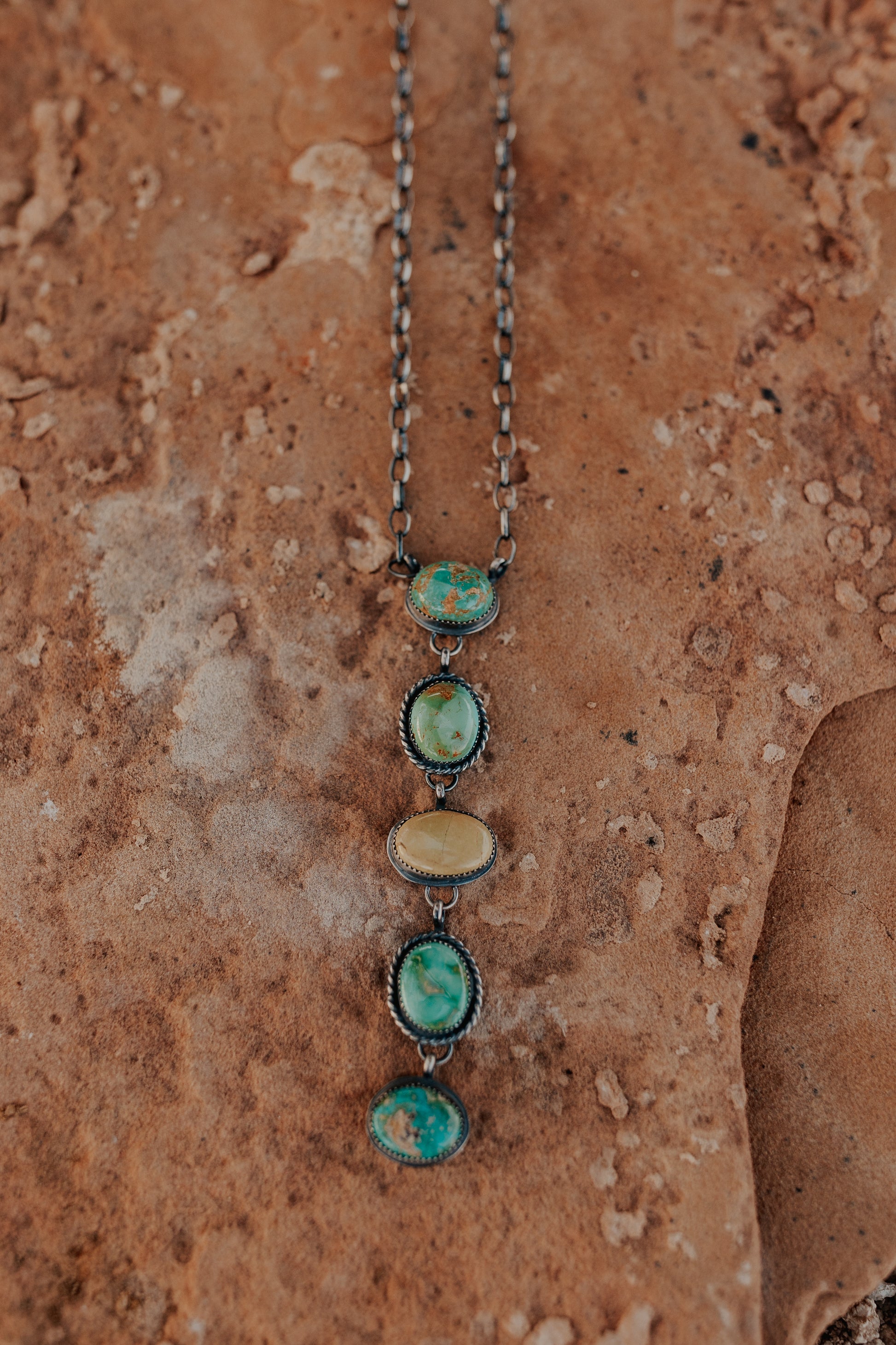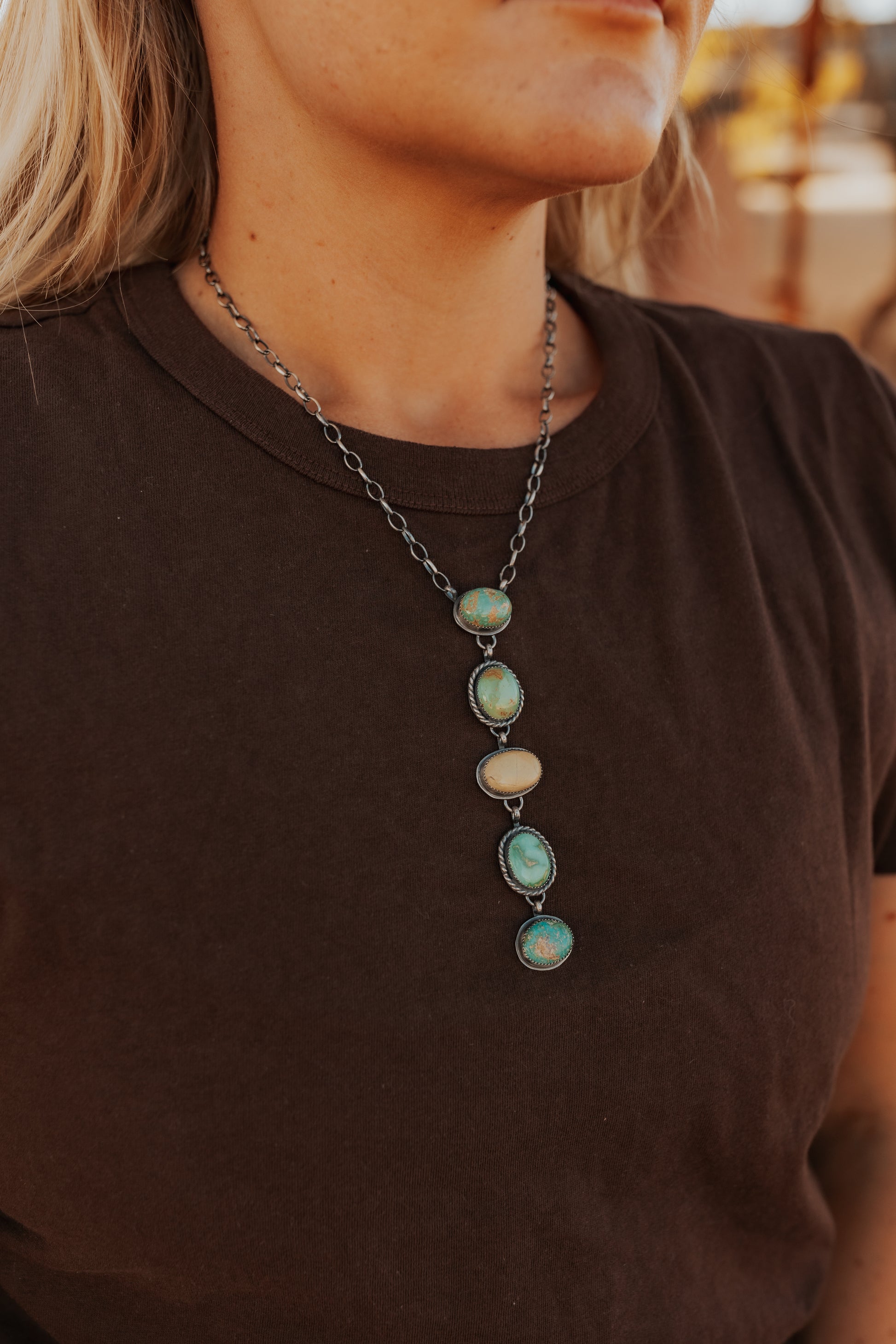Saddle up in style with The June! This charming turquoise lariat necklace, adorned with twisted wire details, is perfect for your everyday cowgirl vibes. With an 18” chain, it's just the right length to swing into any occasion.