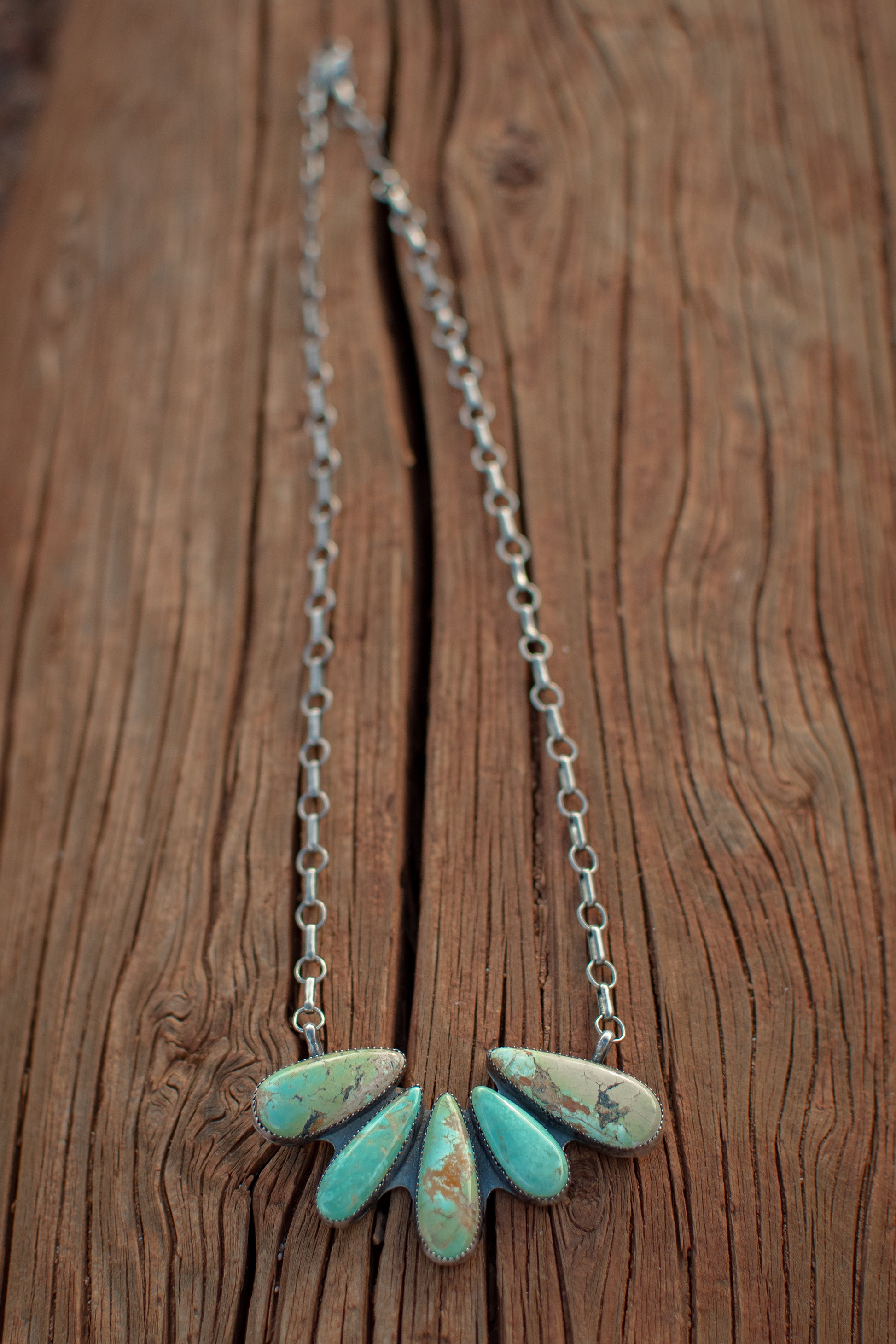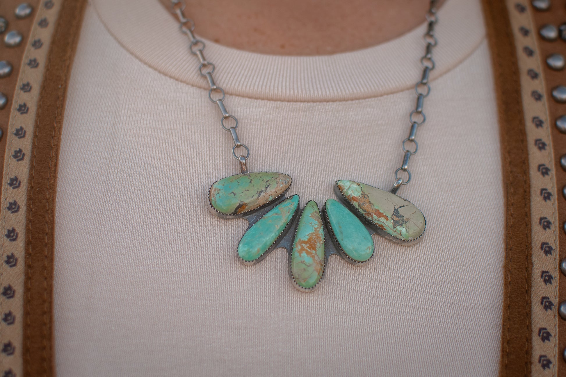 The Tenth Round channels rugged Western charm with an evans stone that commands attention. Hanging from an 18" chain, this statement piece brings that bold spirit to any outfit. Whether you're channeling cowboy cool or mixing it into your everyday wardrobe, this versatile beauty works hard and plays harder.