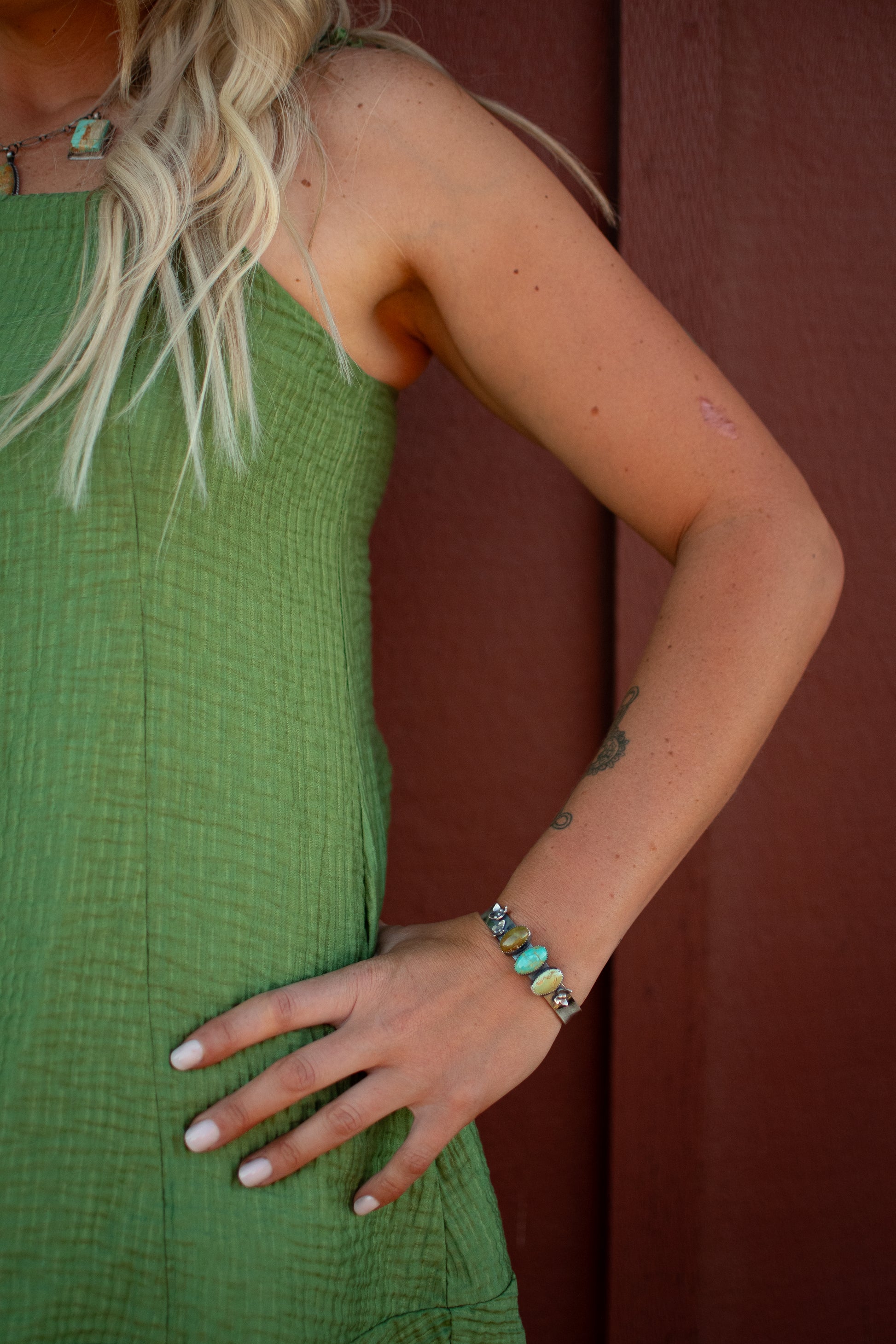 The Visalia captures cowgirl charm with its playful handmade butterfly details and vibrant Evans stones. This sturdy 6" cuff is designed to withstand adventures while adding a lively, whimsical touch to your style. Perfect for those who love a bold yet fun accessory!